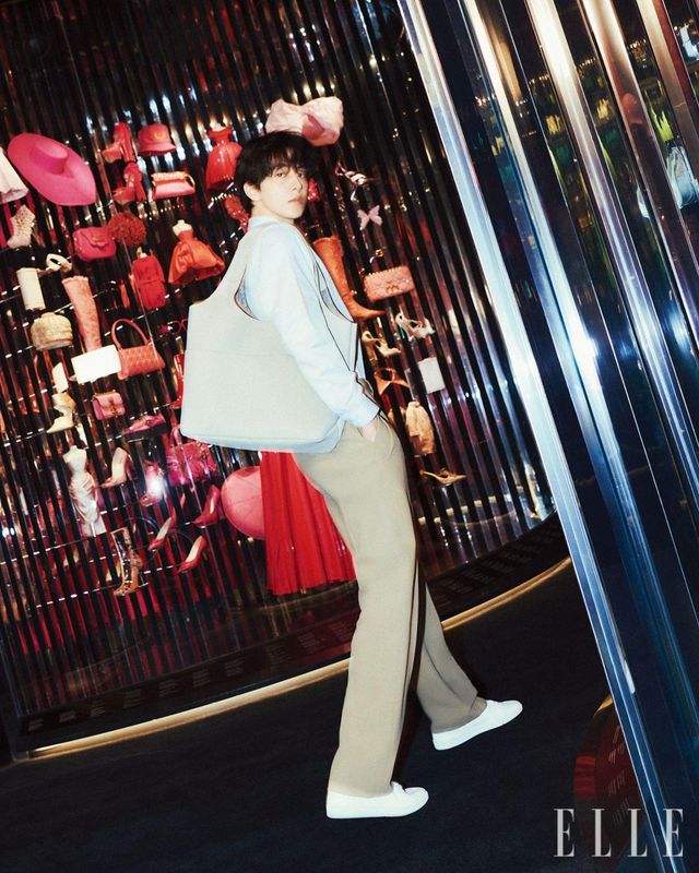 미니어처 사이즈로 제작한 디올의 아카이브를 만날 수 있는 컬러라마 공간에서 남주혁이 입은 블루 셔츠와 베이지 팬츠, B01 매치포인트 테니스 스니커즈, 디올 프리베 쇼퍼백은 모두 Dior Men.
