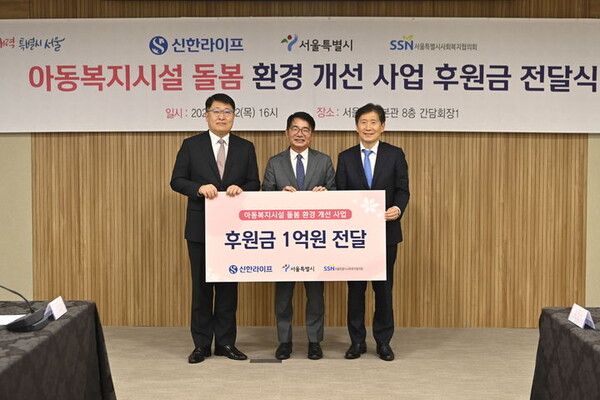 뉴시스 보도에 따르면, 시는 신한라이프, 서울시사회복지협의회와 함께 지난 22일 서울시청 8층 간담회장에서 기부금 1억원에 대한 전달식을 가졌다고 23일 밝혔다. 이날 전달식에는 김태균 서울시 행정1부시장, 이영종 신한라이프생명보험 주식회사 대표이사, 김현훈 서울시사회복지협의회 회장 등이 참석했다.