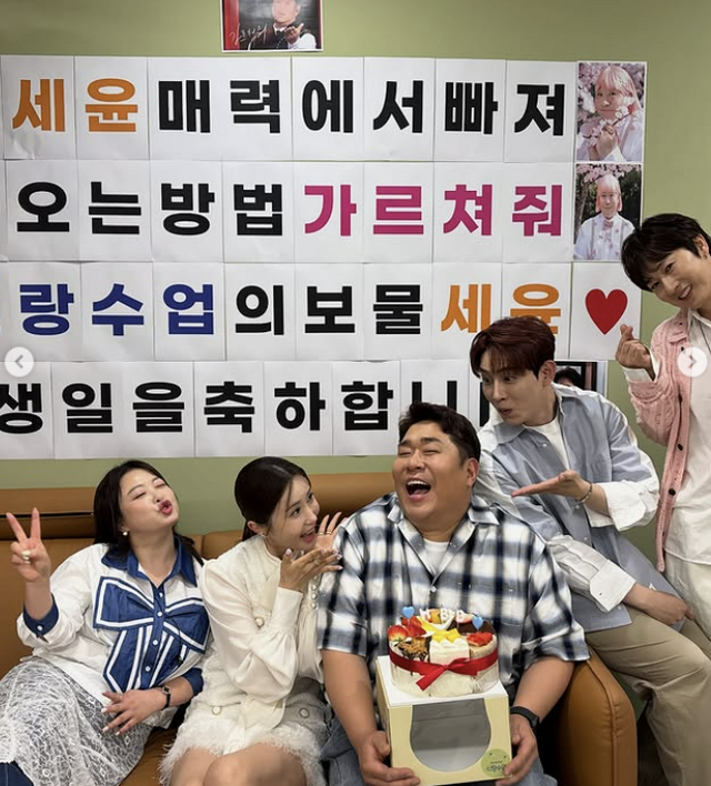 또한 같은 날 박현호는 ‘신랑수업’의 진행을 맡고 있는 개그맨 문세윤의 화기애애한 생일 파티 현장도 공개했다. 대기실로 보이는 공간 현수막엔 “문세윤 매력에서 빠져나오는 방법 가르쳐줘, 신랑수업의 보물 세윤 생일을 축하합니다”라고 적혀있다. 심진화와 이다해도 함께 이를 축하해 돈독함을 자랑했다.