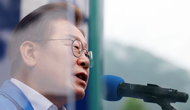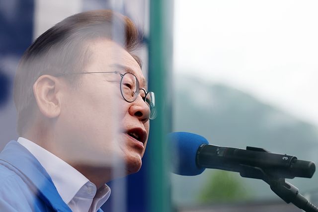 이재명 더불어민주당 대선 후보가 지난 22일 경남 양산시 양산워터파크공원에서 시민들에게 지지를 호소하고 있다. 자료 사진 / 뉴스1