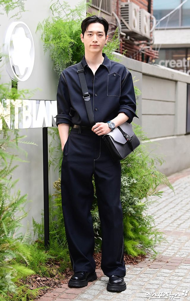 이날 서강준은 군더더기 없이 떨어지는 실루엣의 셔츠는 흰색 스티치 포인트로 디테일을 살렸고, 같은 소재의 팬츠와 매치해 통일감을 줬다. 여기에 크로스백과 블랙 레더 슈즈를 더해 실용성과 스타일을 동시에 잡았다.