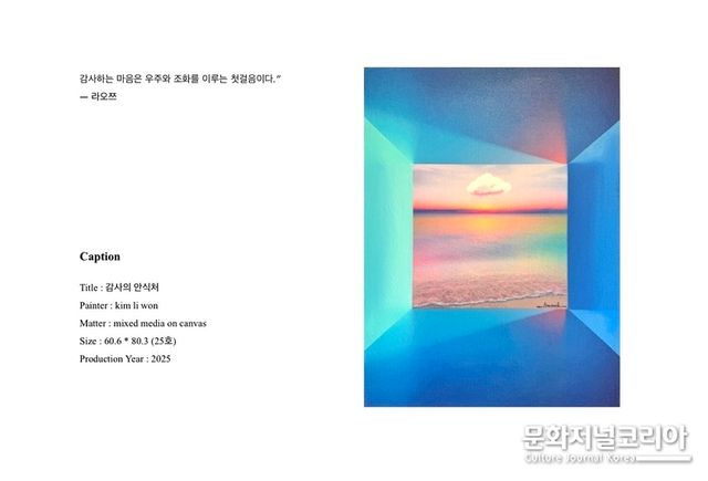 한편 지난주 세텍에서 선보인 ‘2025서울아트페어’에 이어 ‘2025조형아트서울’아트페어에 선보이는 신작 공개로 성장한 김리원작가의 힘찬 2025 활약을 기대해 본다.