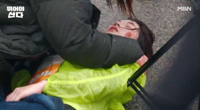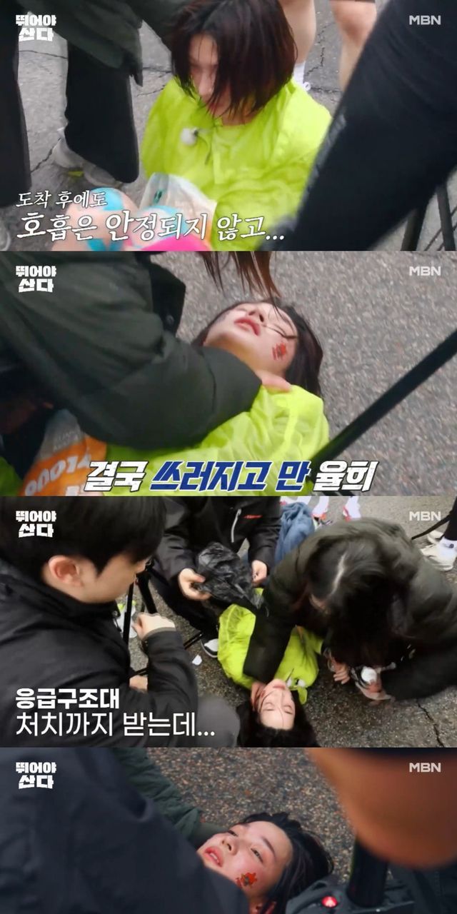 숨을 고르지만 불안정한 호흡을 보이는 율희는 응급구조대 처치까지 받는다.