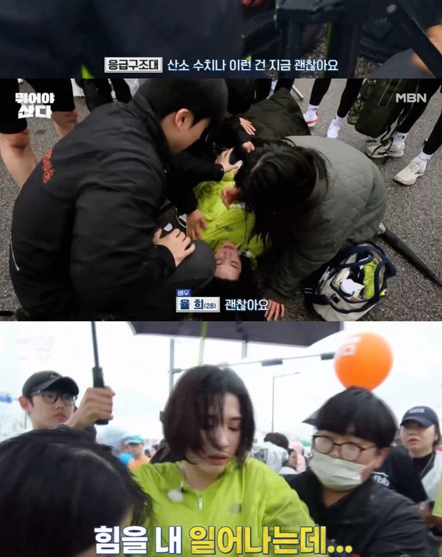 (엑스포츠뉴스 오승현 기자) 율희가 마라톤 중 호흡 곤란 증세로 응급처치를 받는 일촉즉발 상황이 펼쳐진다.