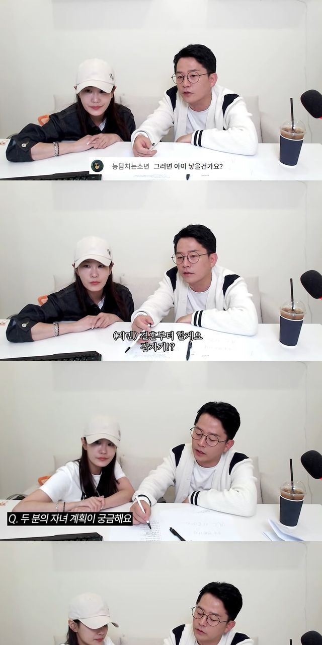 이날 두 사람은 결혼과 자녀 계획에 대한 구독자들의 질문을 받았다. ‘아이를 낳을 계획이 있냐’는 질문에 김준호는 김준호는 "갑자기?"라며 당황한 반응을 보였고, 김지민은 "결혼부터 하겠다"고 답했다.