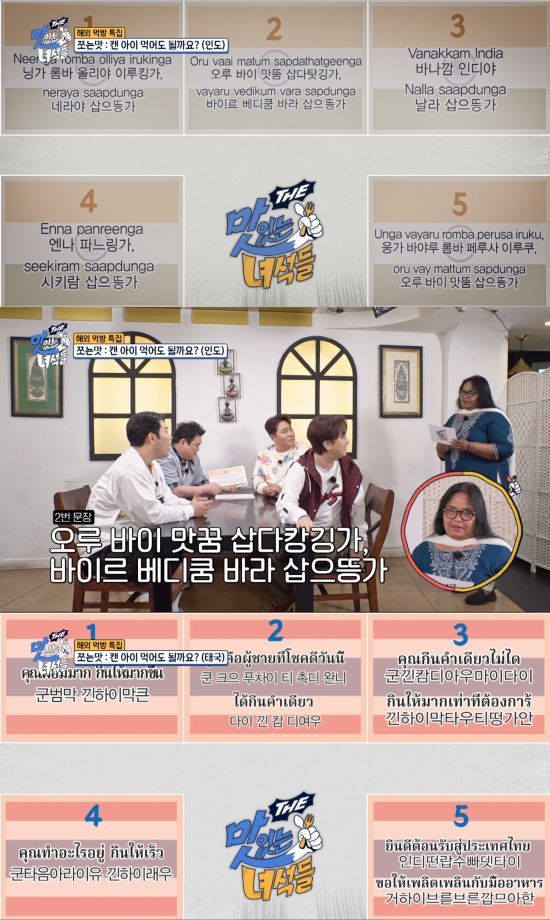 첫 번째 식당에서는 인도어로 쓰인 다섯 개의 문장이 공개됐는데, 외대 출신인 김준현은 물론, 모든 멤버가 전혀 감을 잡지 못하고 엉뚱한(?) 추측성 해석들을 내놓으며 현장을 웃음 바다로 만든다.