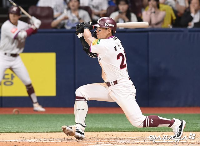 송성문은 지난 22일 서울 고척스카이돔에서 열린 2025 신한 SOL Bank KBO리그 삼성 라이온즈와의 경기에 1번타자 겸 3루수로 선발출전, 4타수 1안타 1도루를 기록했다.