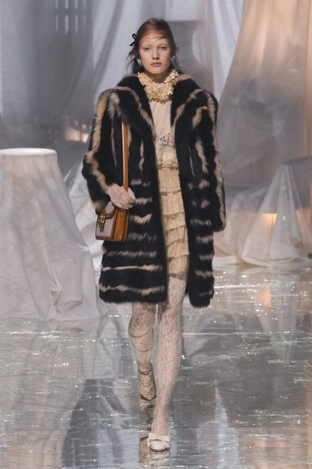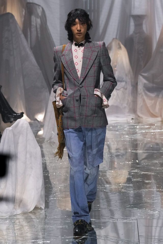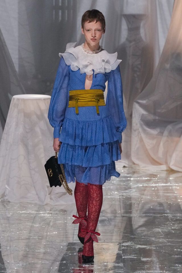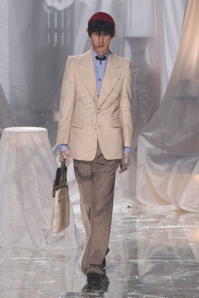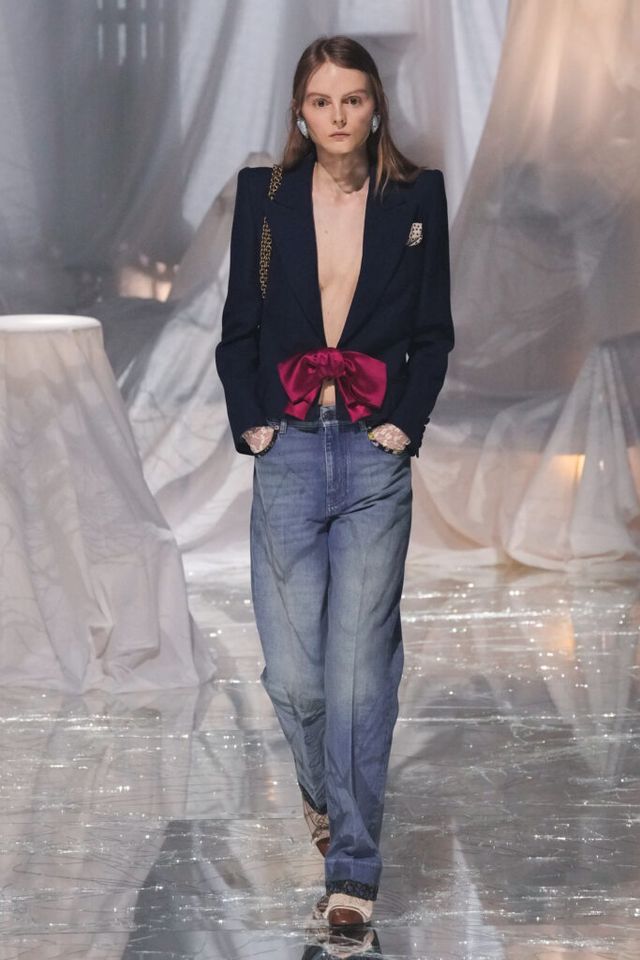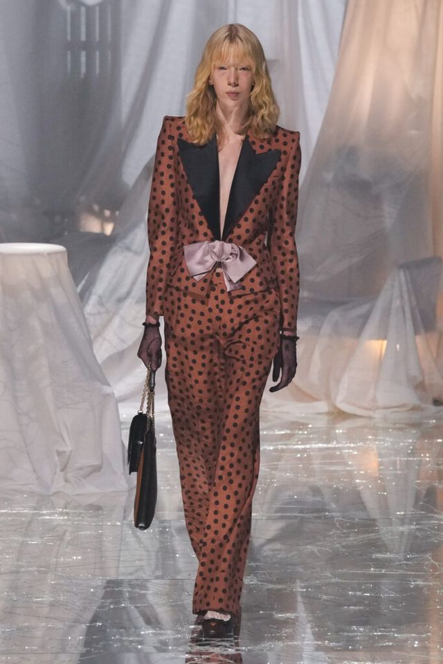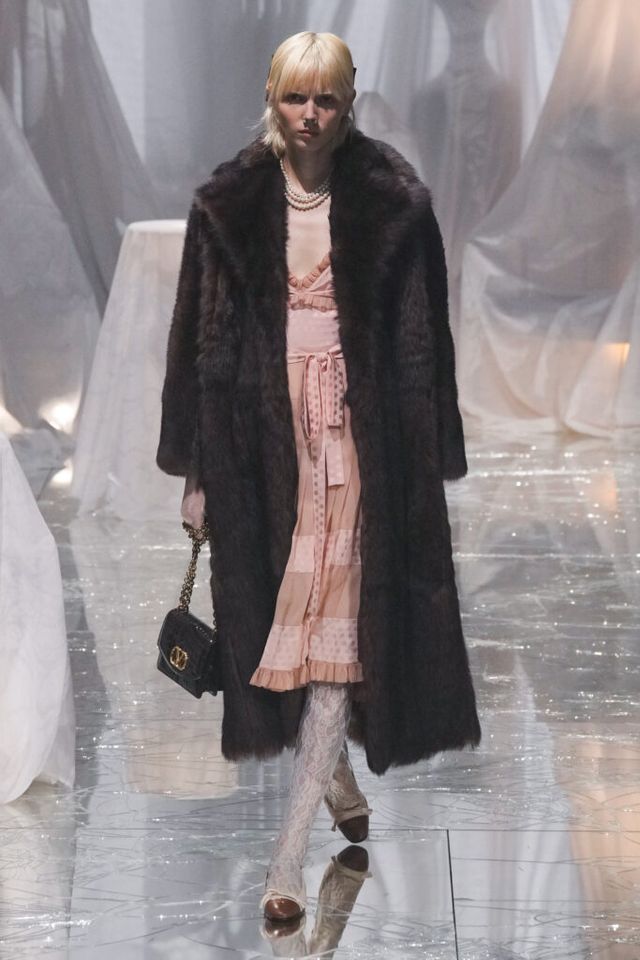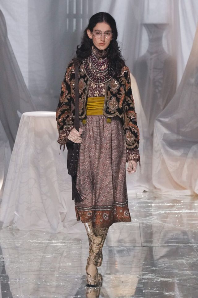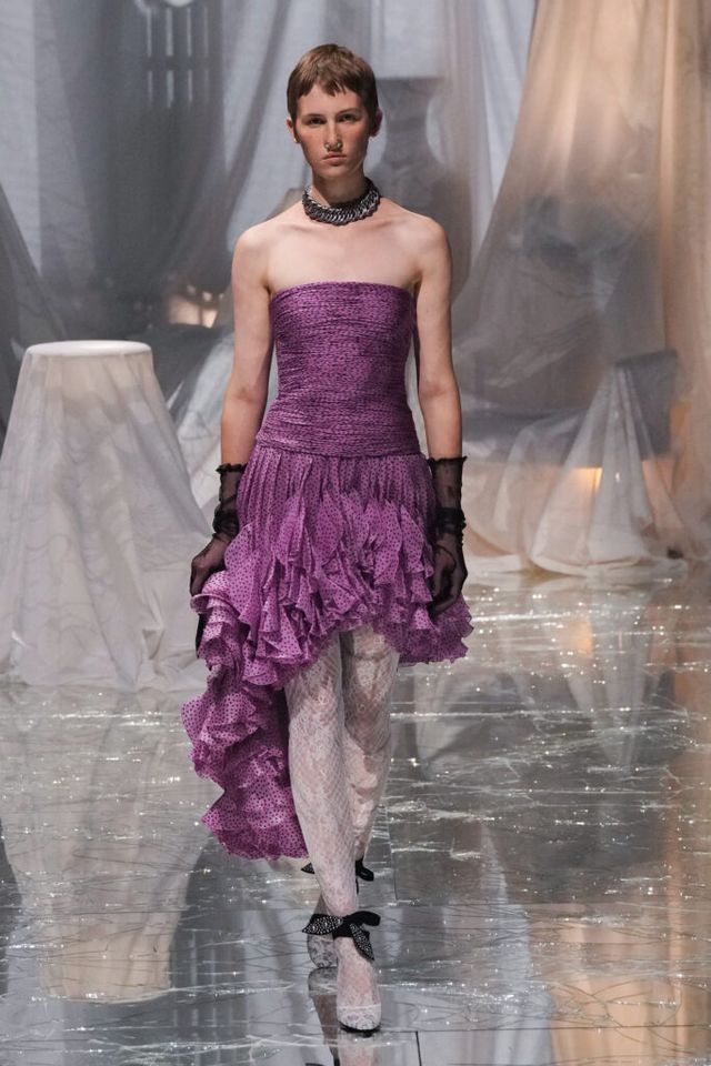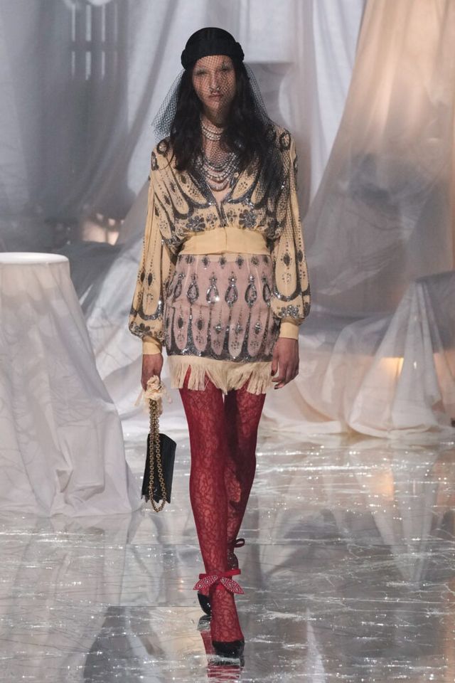 NOTE 금이 간 거울 바닥에 흰색 천으로 덮인 골동품이 가득한 공간에서 그간 관심이 집중됐던 발렌티노 2025 S/S 컬렉션이 공개됐다. “잊혀진 무언가를 찾고 있었습니다.” 알레산드로 미켈레는 발렌티노의 황금기라 평가받는 1970년대의 아카이브를 탐구했고, 이를 현대적으로 재해석한 룩들은 어느 하나 평범한 것이 없었다. 화려한 스팽글, 자수, 베일, 거대한 모자, 피어싱, 리본 등에도 그의 미감을 충실하게 담아낸 컬렉션이었다.