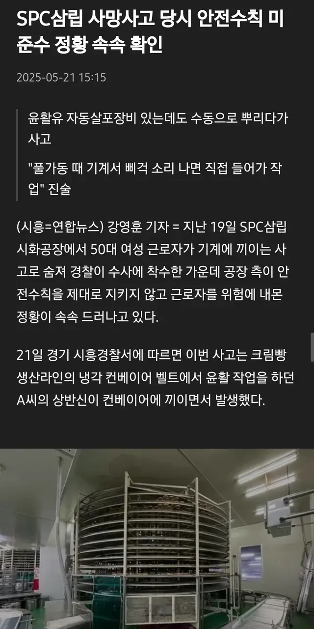이걸로 SPC에 2년간 인명사고는 4건 (3명 사망, 한명 손 절단)