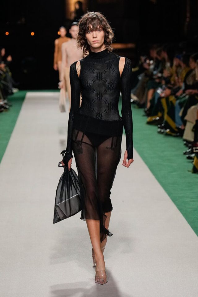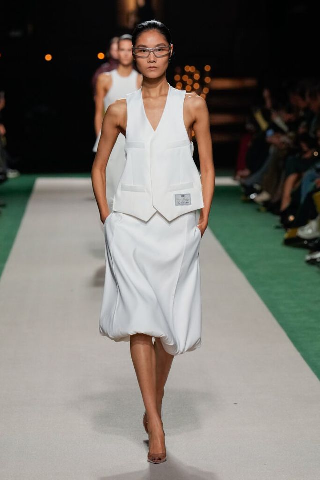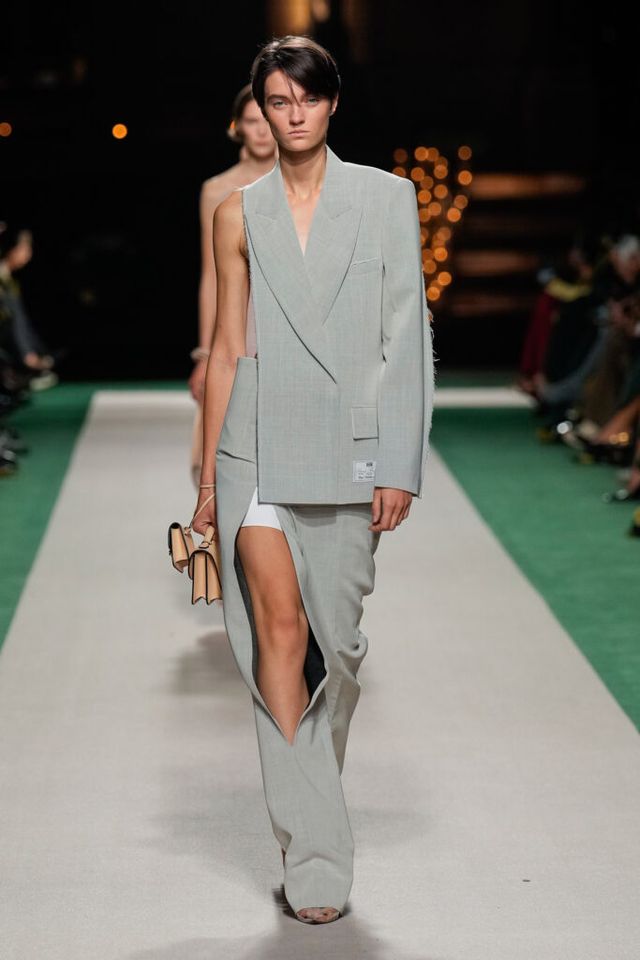 NOTE 빅토리아 베컴의 ‘옷장’에 대한 탐구는 계속된다. 이번 시즌 그는 ‘옷을 입는 공간’이자 ‘옷을 벗는 공간’인 옷장에 집중했다. 바지와 치마의 슬릿, 접히거나 풀린 허리 밴드, 옷의 구조가 드러나는 재킷으로 옷을 입고 벗는 과정을 표현했다. 익숙한 일상을 새로운 시각으로 바라보는 빅토리아 베컴의 재치와 상상력을 느낄 수 있었던 쇼.