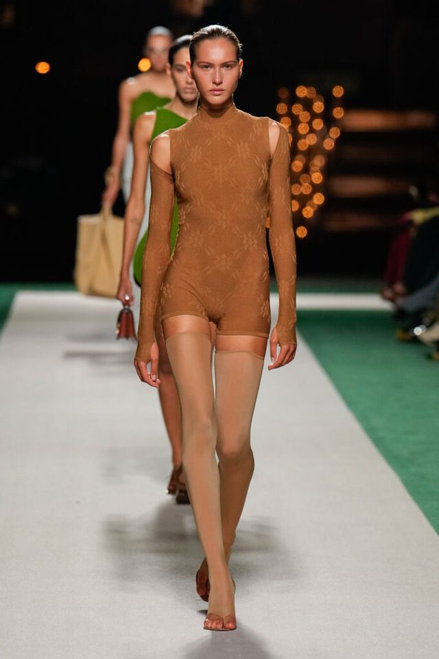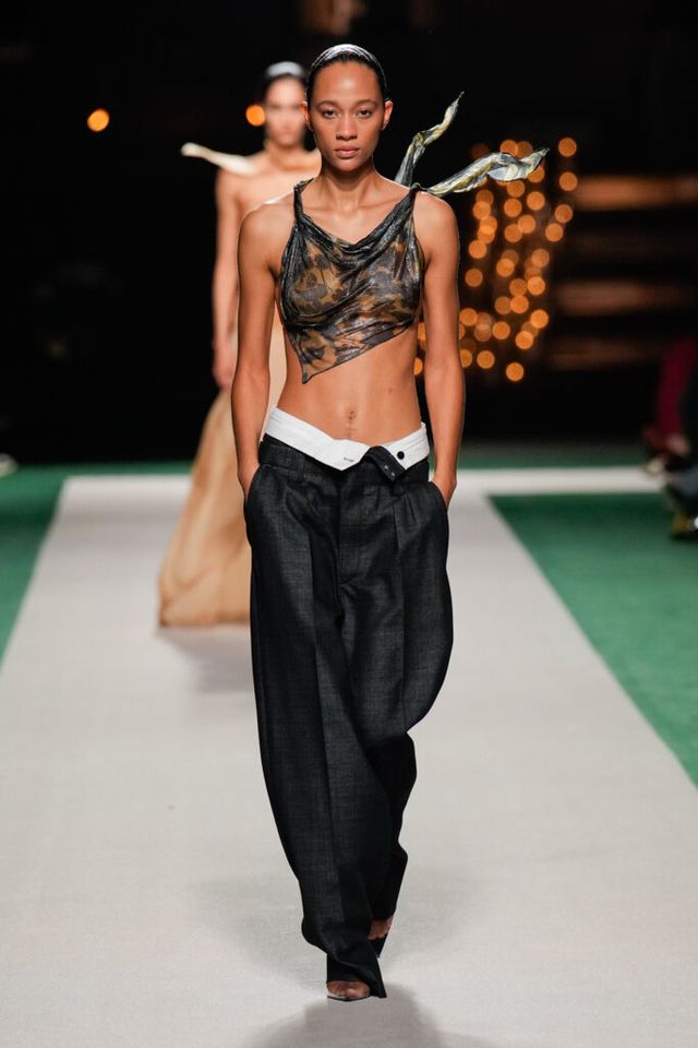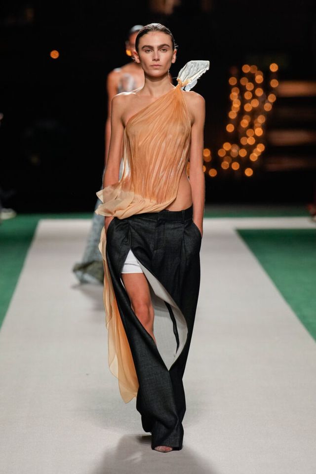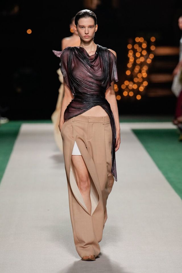FAVORITE LOOK 인체의 모양대로 드레이핑된 누드 톱과 컷아웃 디테일의 로라이즈 팬츠. 옷을 입고 벗는 모습이 떠오른다.