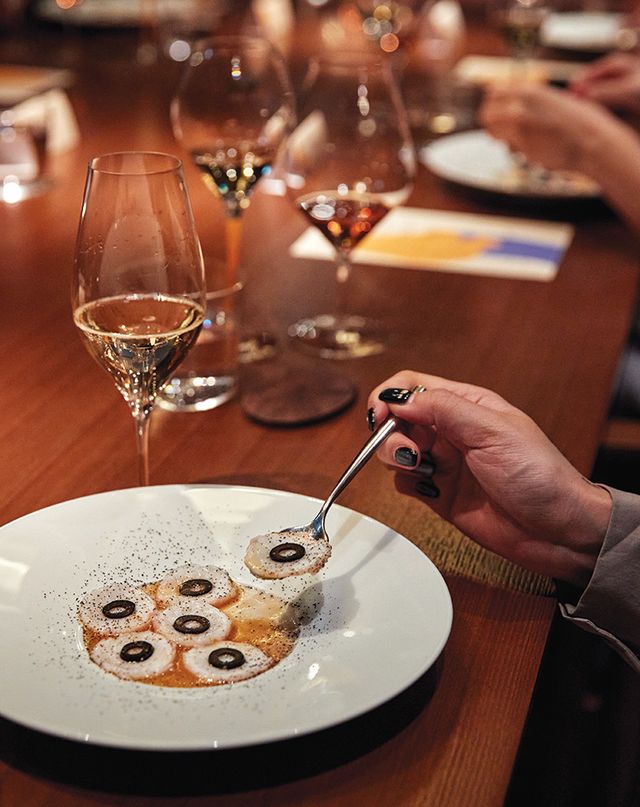 지난 4월 말, 한국의 여성 리더들과 함께하는 ‘볼드 우먼 디너’가 레스토랑 ‘꼴라쥬’에서 열렸다. 김선희 매일유업 부회장, 손기연 MCK 퍼블리싱 대표, 이혜민 핀다 공동대표, 한영아 애술린 코리아 대표이사, 한현옥 클리오 대표이사가 참여한 이 식사 자리에서는 뵈브 클리코의 샴페인 6종이 13가지 요리와 페어링되어 그 풍미를 더했다. 특히 공식 출시에 앞서 선보인 ‘라그랑 담 2018’은 라임과 유자를 비롯한 시트러스 과일과 흰 꽃의 향이 어우러지고 페이스트리 뉘앙스가 더해진 샴페인이다. 올리브 파우더를 곁들인 문어 요리, 감자 퓌레와 캐비아를 올린 한우 타르타르 등 차가우면서도 무게감이 느껴지는 음식과 뛰어난 궁합을 보였다.