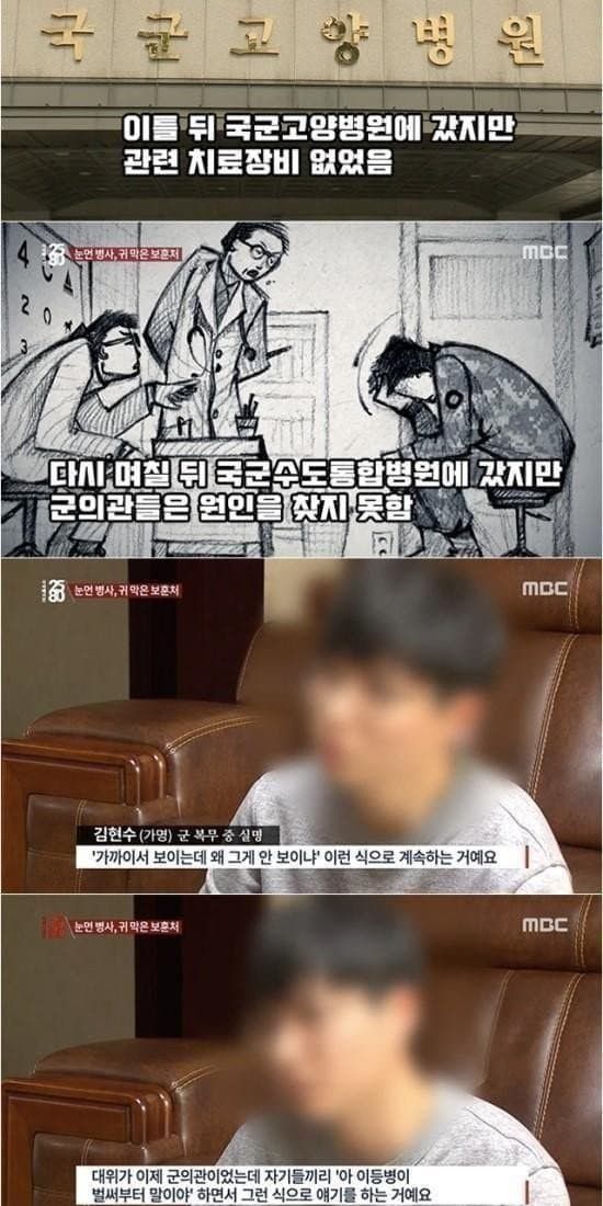 고전) 안 군복무중에 눈 다쳤는데 병원 안보내준 군대