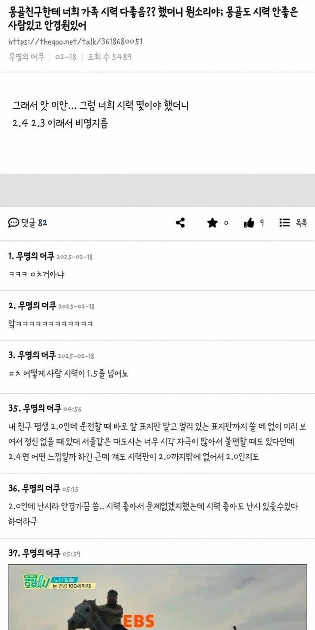 몽골친구한테 너희 가족 시력 다좋음?? 했더니,,