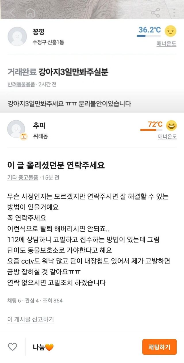 강아지 맡아주실 분 구합니다하고 구해지니까 계정 탈퇴하고 런했나봄..요즘엔 유기도 신박하게하네