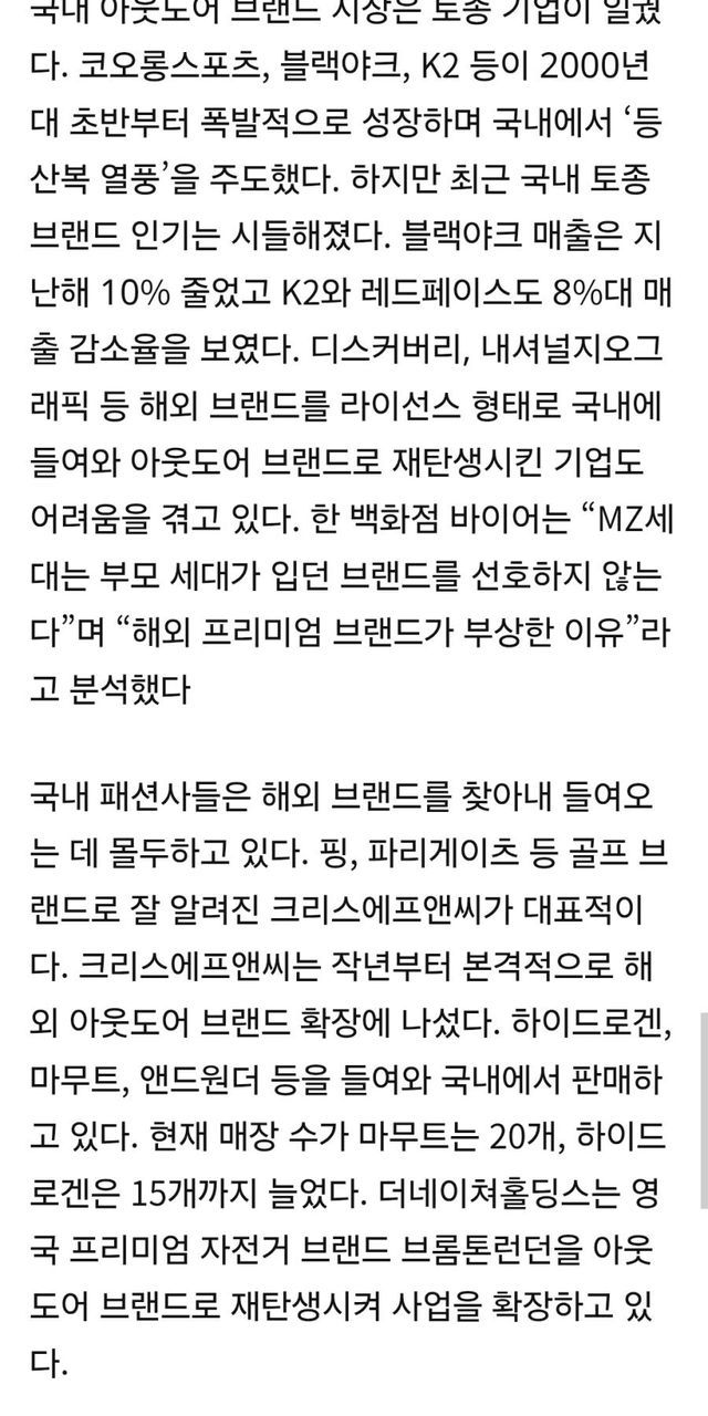 국내 아웃도어 브랜드 안 입는 MZ 세대