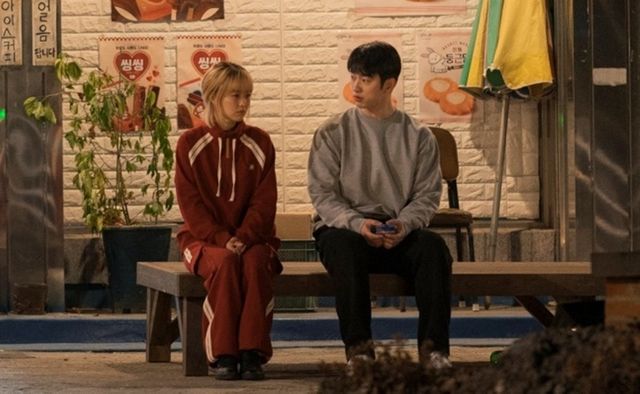 특히 헝클어진 머리에 후줄근한 추리닝 차림으로 첫사랑을 맞닥뜨린 유미지의 얼굴에는 당혹스러움이 역력하다. 이호수 역시 유미지를 향해 놀란 표정을 지어 두 사람 모두 예상치 못한 만남임을 짐작하게 한다.