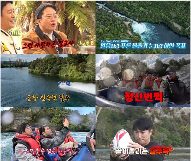 이날 ‘독박즈’는 김준호가 강력 추천한 새우 요리 집에서 푸짐하게 배를 채운다. 화기애애한 분위기 속, 식사를 마친 ‘독박즈’는 근처에 있는 제트보트 탑승장으로 간다. ‘와이카토강’을 쾌속 질주하며 덤으로 ‘후카 폭포’의 절경까지 코앞에서 볼 수 있는 제트보트를 탄 이들은 시속 90km에 달하는 엄청난 속도에 깜짝 놀라 비명을 지른다. 급기야 보트 운전사는 배를 360도 회전시키고 절벽에 닿을 듯 말 듯한 곡예 운전을 선보인다. 이에 김대희는 졸도 직전이 돼, “이제 그만”이라고 절규한다.