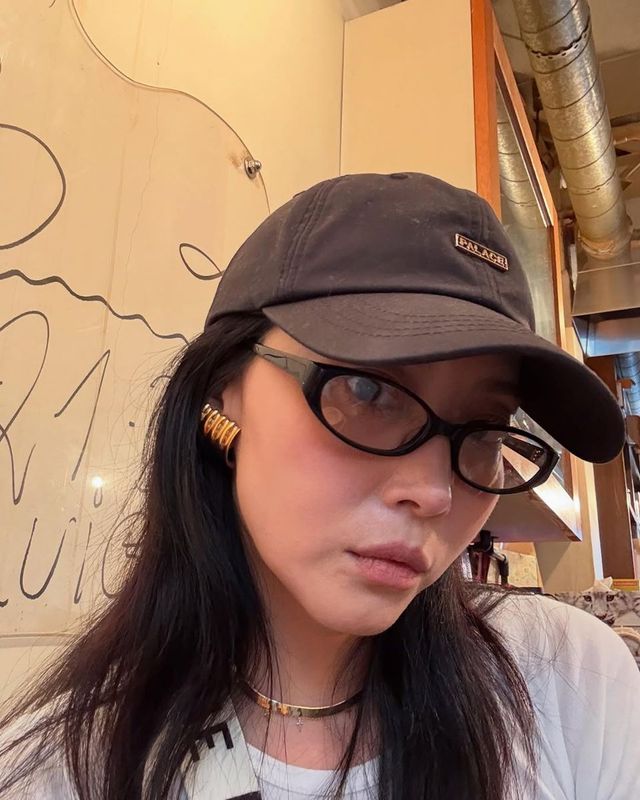 172cm의 큰 키 덕분에 스커트가 바닥까지 자연스럽게 떨어지며 흐르듯 이어지는 실루엣은 마치 한 폭의 그림 같았고, 캐주얼한 스포티 무드와 감성적인 페미닌 요소의 균형이 완벽했다. 여기에 네이비 볼캡으로 포인트를 더하며 갤러리 속에서도 부담스럽지 않은 스타일링을 선보였다.
