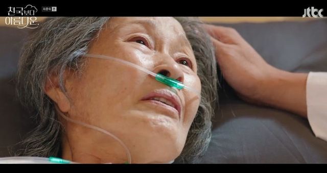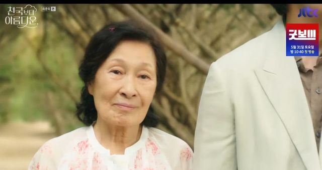25일 JTBC ‘천국보다 아름다운’ 최종회에선 환생 후 천수를 누린 뒤 낙준(손석구 분)과 재회하는 해숙(김혜자 분)의 모습이 그려졌다.