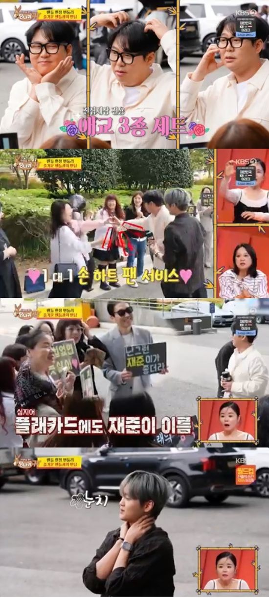 변진섭은 앞서 아들, 매니저를 대할 때와는 달리 팬들이 원하는대로 손 하트로 해주며 적극적으로 팬서비스를 했다.