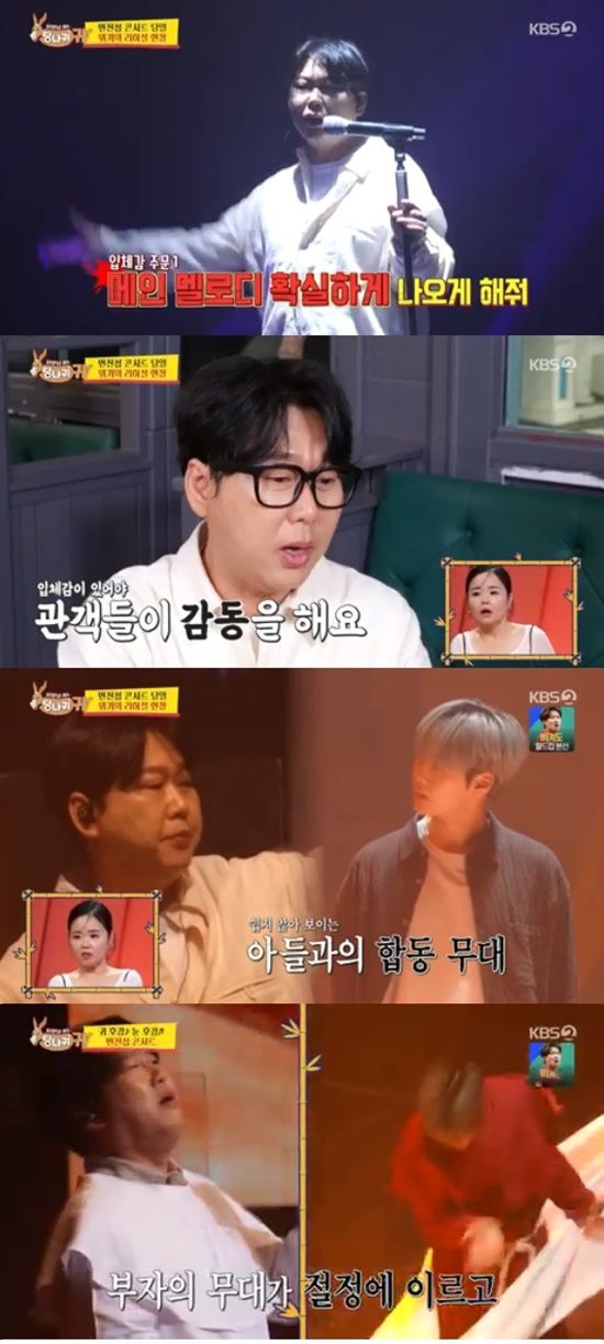 변진섭은 아들과 함께하는 무대인 '님' 리허설 중 안무 팀이 또 뒤늦게 등장하자 "타이밍이 늦는다"고 얘기를 해줬다.
