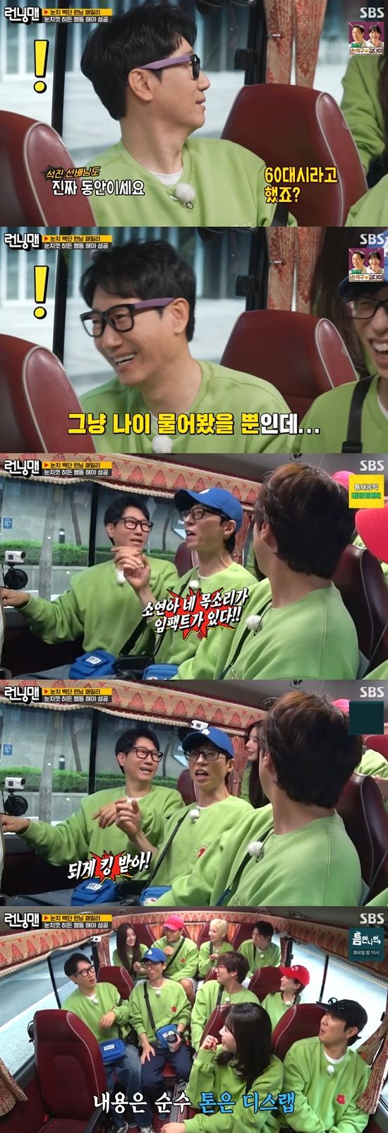 미연은 지석진에게 "진짜 동안이시다. (60대 이신줄) 몰랐다"고 말했다. 소연도 "진짜 젊어 보이신다. 50대이신 줄 알았다"며 놀라움을 밝혔다. 멤버들은 "소연아. 네 목소리가 임팩트 있다. 되게 킹받는다. 꽂히는 목소리다. 그래서 네가 랩퍼구나"라고 말했다.