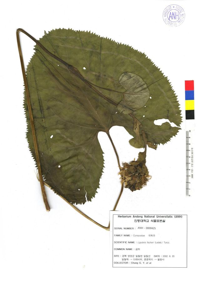 곰취 표본. / 안동대학교 식물표본관