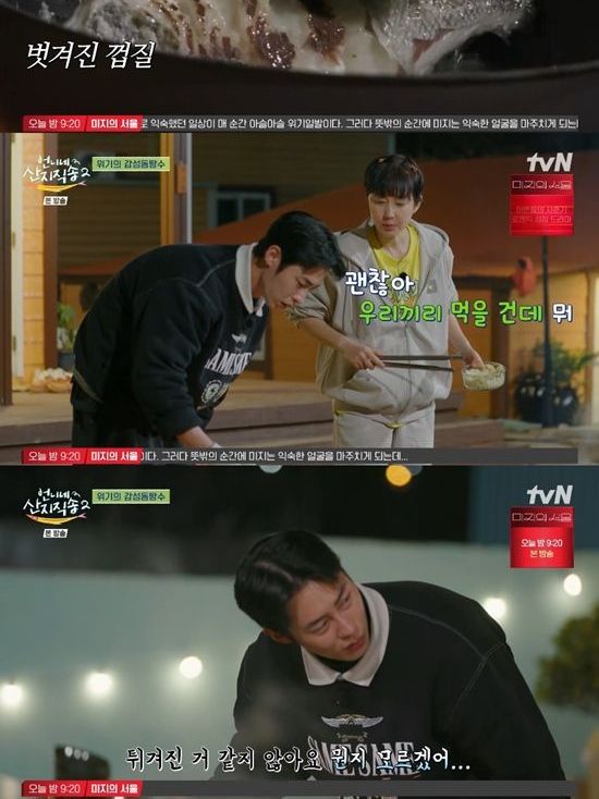 저녁 준비 중 임지연이 "(우리) 무슨 요리 대결하는 것 같다"고 말했다. 이에 윤경호가 "이건 뭔가요"라며 요리 프로그램 사회자처럼 나섰다.