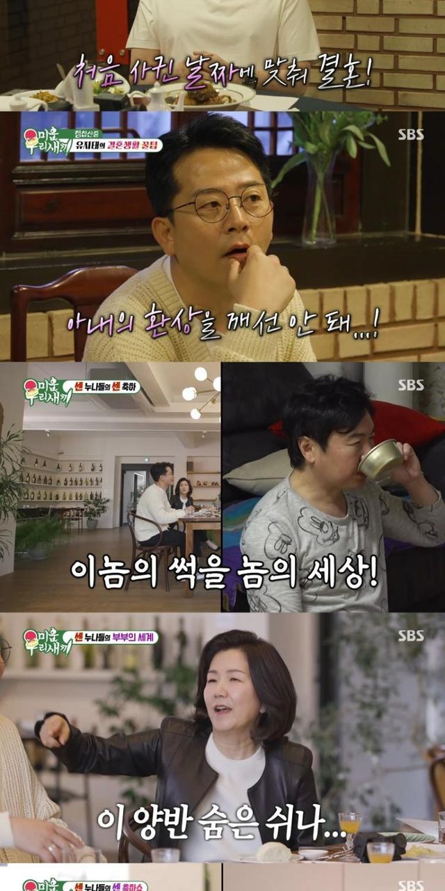 유지태는 “행복을 유지하려면 아내에게도 계속 멋있는 척을 해야 한다. 다 받아줘야 한다”라며 결혼 생활에 대해 조언했다. “화장실을 앉아서 사용하는 것뿐만 아니라 뒤처리도 잘해야 한다”라는 현실적인 유지태의 조언에 김준호는 “유지태도 그러냐”라며 놀라워했다.
