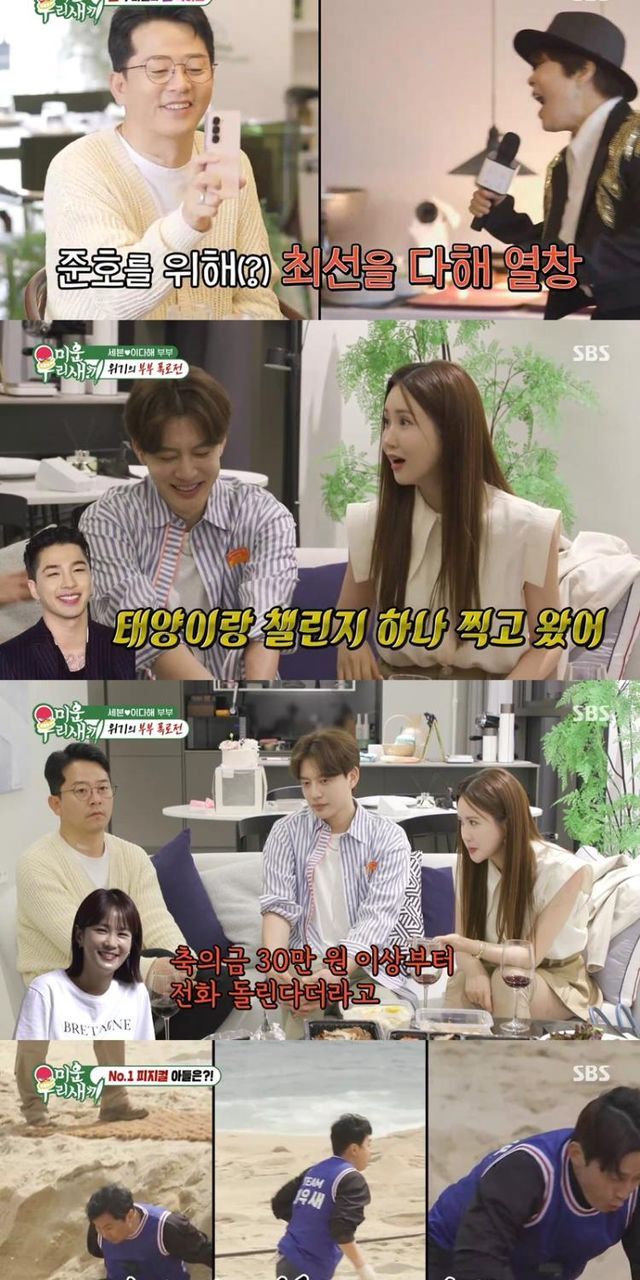 한편 이다해는 “결혼식 날 신부 대기실에 온 하객들이 신랑 못 봤다고 하고, 연락도 안되더라. 입장 직전 에야 땀을 흘리면서 나타나서는 “태양이랑 챌린지 하나 찍고 왔다”라고 하더라. 우리 결혼식장 앞에서 챌린지를 찍고 있더라”라며 “제가 울었지 않았냐, 속이 부글부글해서 운 거다”라고 밝혔다. 이다해는 “남자들이 너무 장난이 과해도 문제다. 남편이 결혼 기념일에 ‘앞으로 20년 더 행복하자’ 라더니 20년 후에는 졸혼하자고 하더라. 내 귀를 의심했다”라고 폭로를 이어갔고, 김준호는 “이거 기사 나는 거 아니냐”라며 폭소했다.