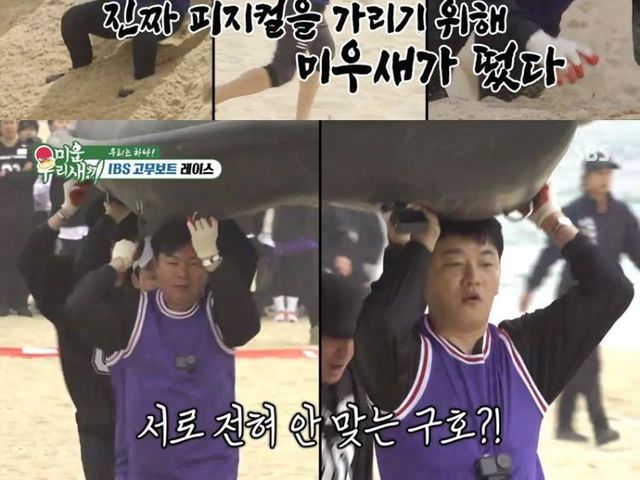 이어 세 사람은 고무보트를 들고뛰는 팀미션에 도전했지만, 구호와 발이 따로 노는 모습으로 폭소를 자아냈다.