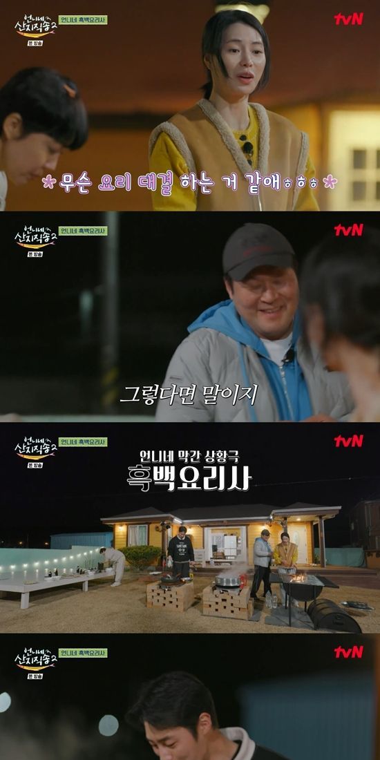 저녁 준비 중 임지연이 "(우리) 무슨 요리 대결하는 것 같다"고 말했다. 이에 윤경호가 "이건 뭔가요"라며 요리 프로그램 사회자처럼 나섰다.