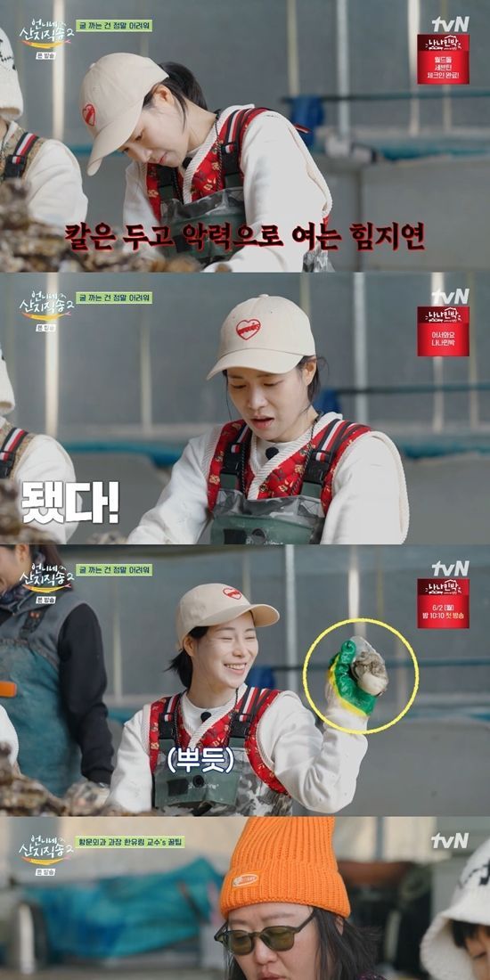 오전에는 출연진들이 직접 잡아 온 굴의 껍데기를 깠다. 염정아는 "난 (굴의 틈을) 못 찾겠다"며 어려움을 토로했다. 임지연도 "쉽지 않네. 진짜 잘 안된다"라며 공감했다.