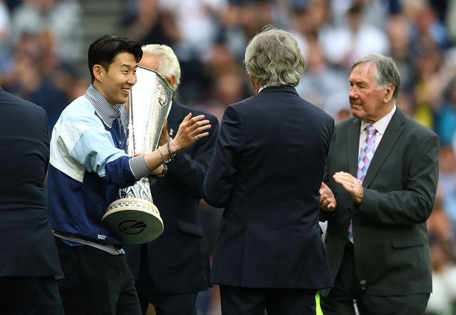 Soccer Football - Premier League - Tottenham Hotspur v Brighton & Hove Albion - Tottenham Hotspur Stadium, London, Britain - May 25, 2025 Tottenham Hotspur's Son Heung-min carrying the Europa League trophy during a lap of appreciation after the match REUTERS/Tony O Brien EDITORIAL USE ONLY. NO USE WITH UNAUTHORIZED AUDIO, VIDEO, DATA, FIXTURE LISTS, CLUB/LEAGUE LOGOS OR 'LIVE' SERVICES. ONLINE IN-MATCH USE LIMITED TO 120 IMAGES, NO VIDEO EMULATION. NO USE IN BETTING, GAMES OR SINGLE CLUB/LEAGUE/PLAYER PUBLICATIONS. PLEASE CONTACT YOUR ACCOUNT REPRESENTATIVE FOR FURTHER DETAILS/2025-05-26 03:48:41/