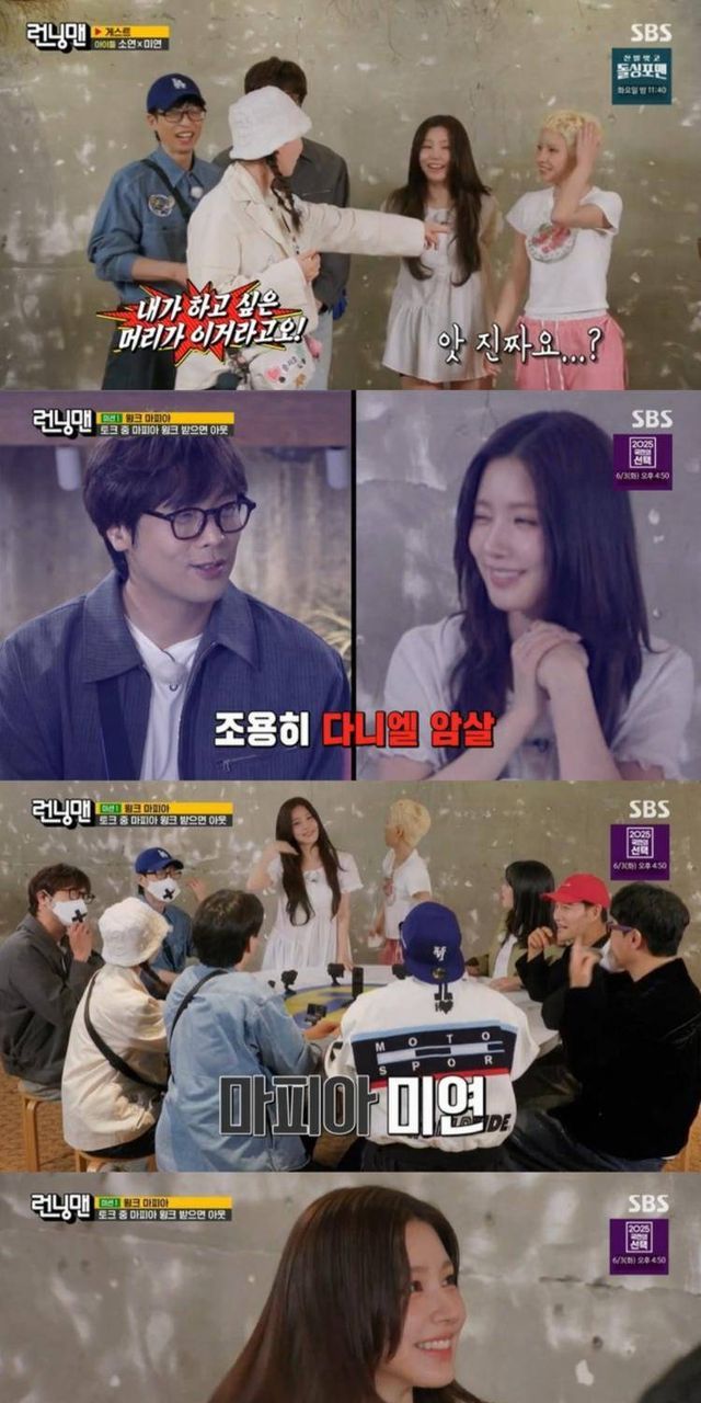 김종국은 “나 아니다. 나 원래 이런 거 하면 중간에 웃는다. 소연이 아니면 지예은이 마피아”라며 반박했지만 멤버들의 선택은 김종국이었다. 하지만 마피아는 아이들 미연이었고 소연은 “배신감 너무 느낀다”라며 놀라워했다. 반면 미연의 윙크를 맞은 최다니엘은 “윙크 맞으니까 기분이 너무 좋아지는 거야”라며 부끄러워해 웃음을 자아냈다.