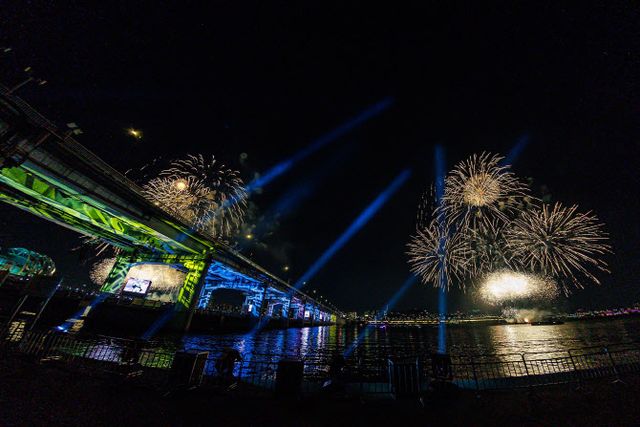 앙코르곡 ‘아주 NICE’의 박자에 맞춰 황금색 불꽃이 화려하게 터지며 장관을 이뤘다. 달빛무지개분수를 활용한 연출 또한 볼거리를 더했다. ‘우리의 새벽은 낮보다 뜨겁다’에서는 분수가 세븐틴 공식색으로 물들었고, 멤버들이 ‘음악의 신’을 부를 땐 물줄기가 박자에 맞춰 춤을 춰 흥겨움을 배가했다.