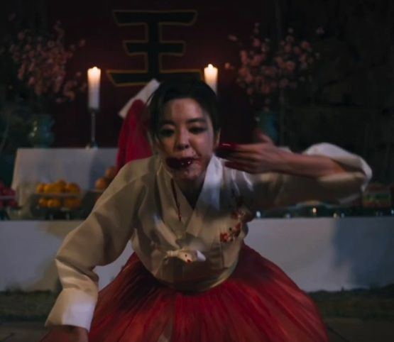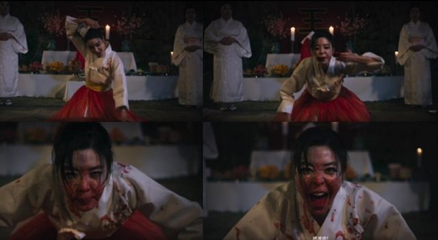 공개된 영상 속 김규리는, 피 묻은 얼굴로 가면을 벗고 일본어로 “꺼져라!(키에로!)”를 절규하는 10여초 장면만으로 폭발적인 몰입감과 광기 어린 연기를 선보이며, 보는 이들에게 깊은 충격과 강렬한 인상을 남겼다.