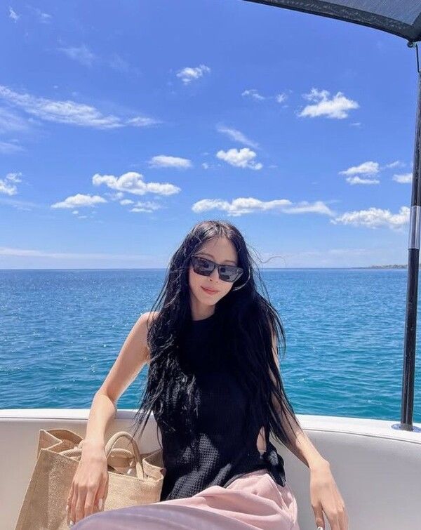 사진 속 한예슬은 요트 위에서 여유로운 한때를 보내고 있는 모습이다.