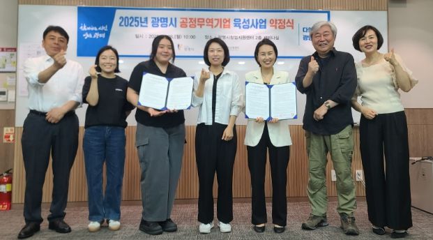 시는 관내 기업을 대상으로 공정무역기업 육성 공모를 진행해 ㈜저스트바이브와 조선클럽㈜를 선정하고, 26일 오전 광명시 창업지원센터에서 약정식을 개최했다.