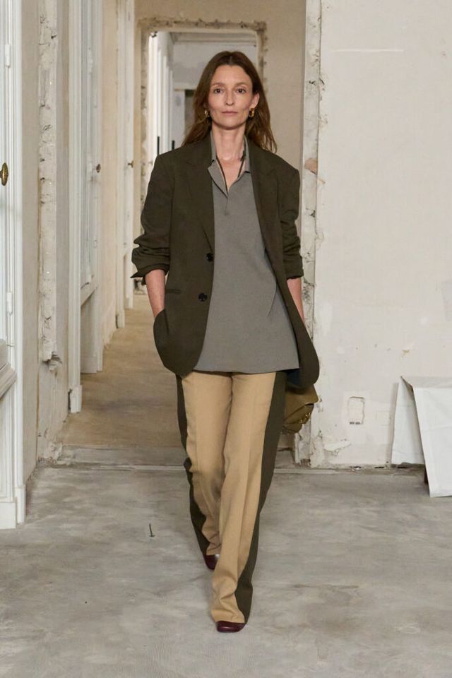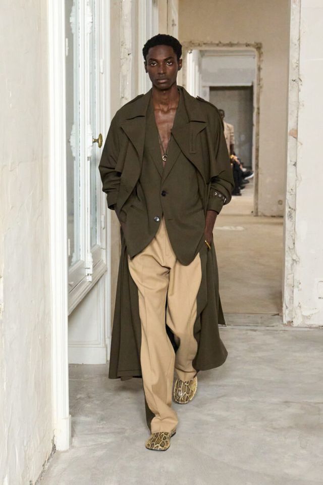 FAVORITE LOOK 짙은 쑥색 재킷과 트렌치코트, 낙낙한 베이지 팬츠가 여유로이 바람에 나부끼는 듯한 룩