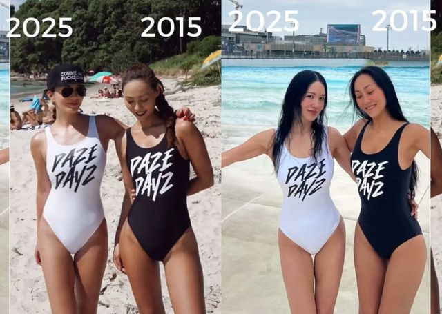 엄정화는 25일 자신의 SNS에 “기다리는 중…#셀카”라는 짧은 글과 함께 2015년과 2025년 같은 수영복을 입고 찍은 사진을 공개했다.