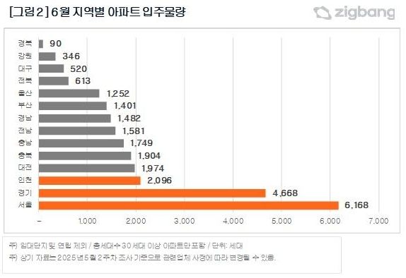 부동산플랫폼 직방은 26일 6월 서울 입주물량이 6168가구로, 올해 상반기 중 월간 기준 최대 규모라고 밝혔다.