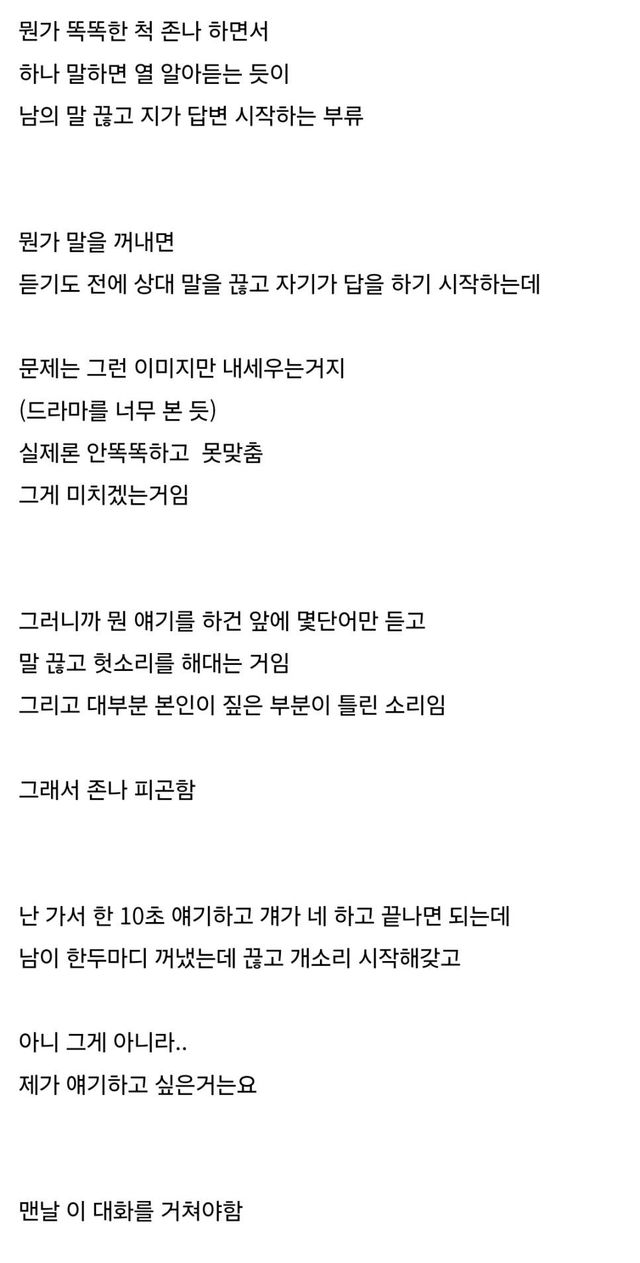 다들 비슷하네 ㅋㅋ난 저걸 스무고개하고 앉았네로 표현하는데말걸기 정말 싫어지는 대화방식임