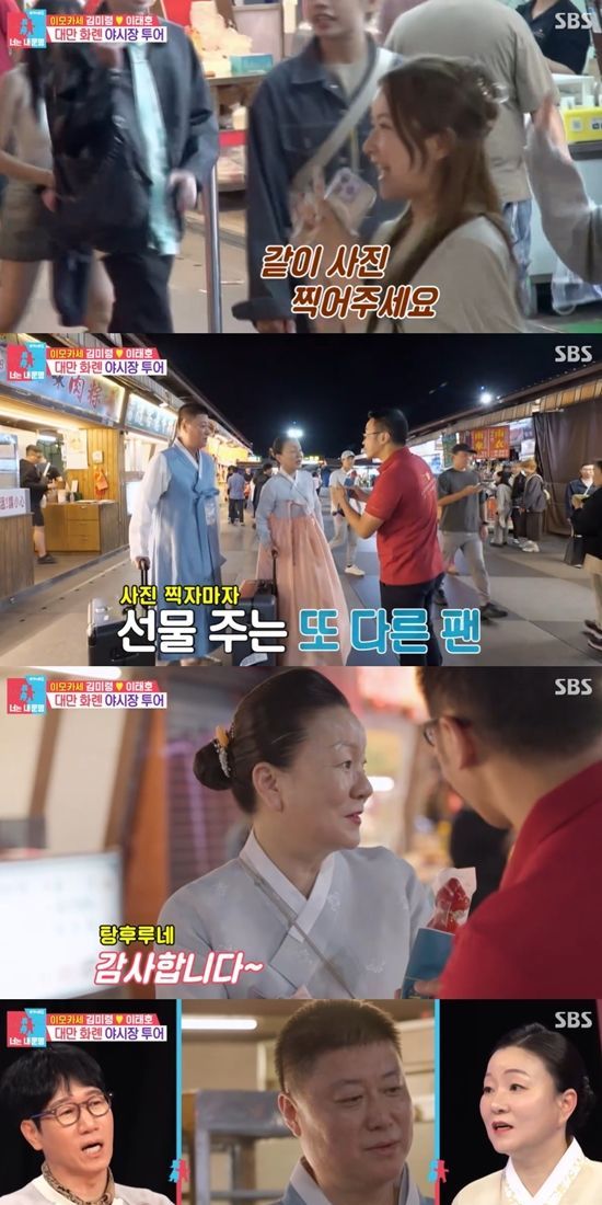김미령은 남편에게 "나의 높은 인기를 봤냐. 대만 오니까 실감하지"라고 말했다. 남편은 "나도 알아보는 사람이 있을 거다"라고 답했다.