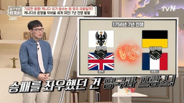 윤 교수는 동맹 관계를 맺고 있는 캐나다와 영국 간 피 튀기는 갈등의 역사도 있었다고 설명했다. 캐나다가 영국의 식민통치 하에 수모를 겪는가 하면, 미국의 팽창을 견제하기 위한 전략적 방패로 희생을 치르기도 했다고. 그는 “캐나다는 영국의 식민지로 많은 희생을 치뤘다. 긴 갈등과 타협 끝에 독립을 했지만 왜 여전히 영국 국왕을 나라의 서열 1위로 두고 있는걸까?”라고 말해 궁금증을 더했다.