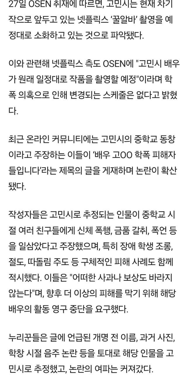 학폭 논란 터지고 초비상걸린 고민시 근황