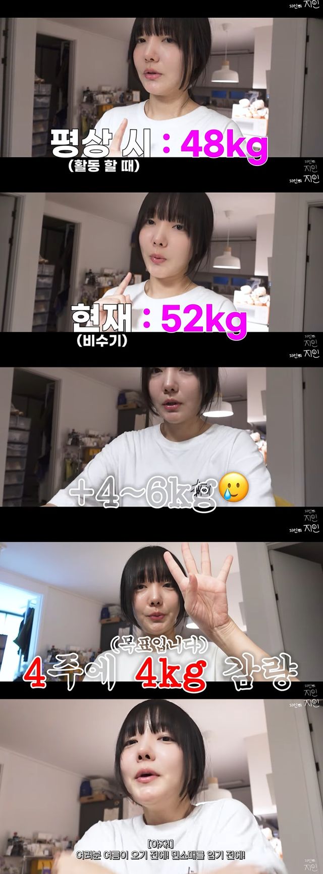 이어 "활동할 때 입금 후에는 46kg, 평상시 몸무게는 48kg"라며 "지금 저는 활동할 때보다 6kg가 오바가 됐고, 평상시보다는 4kg가 오바가 됐다"며 다이어트 결심의 배경을 밝혔다.