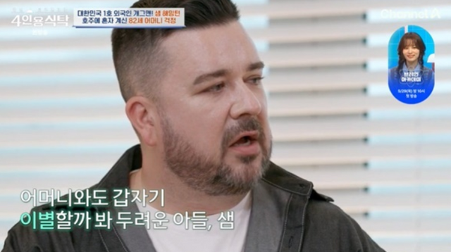 샘 해밍턴은 26일 방송된 채널A ‘절친 토큐멘터리 4인용식탁’(이하 ‘4인용식탁’)에 출연해 이혼 가정이라고 밝히며 “어머니가 혼자 계셔서 이번에 호주에 다녀오면서 여러 고민을 했다”고 말했다.