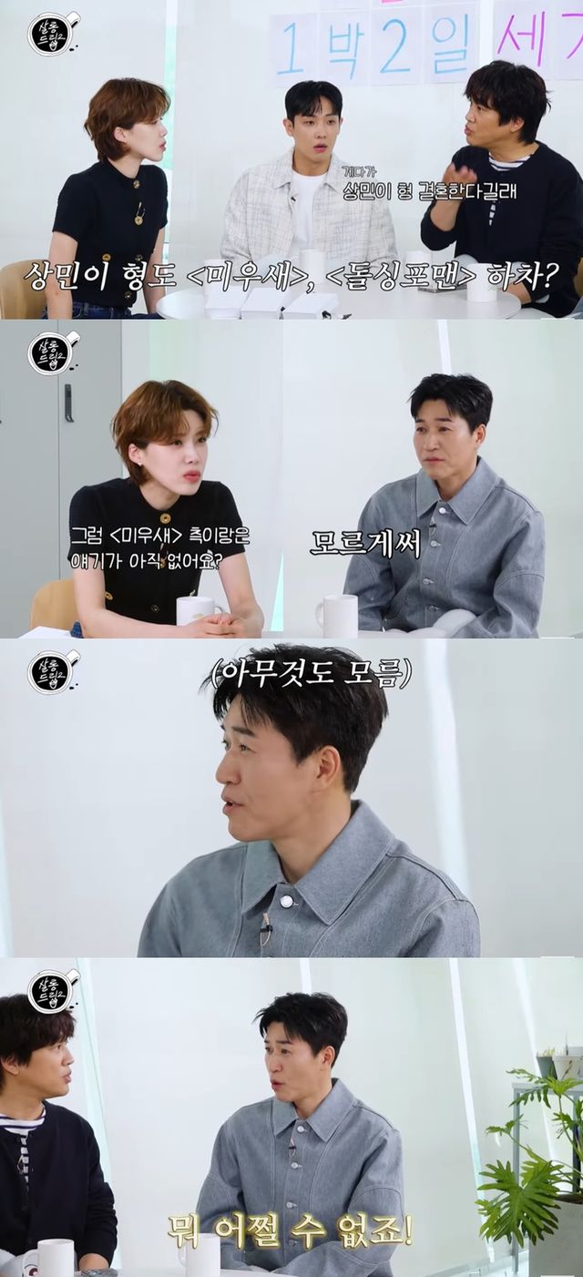 장도연은 김종민에게 "'미우새'측이랑 이야기가 아직 없냐"며 묻자, 김종민은 "난 잘 모른다"라고 답했다.
